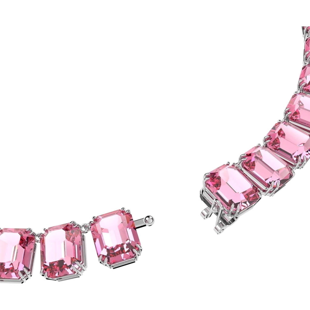 Un maravilloso collar perfectamente diseñado con cristales de talla octogonal uniforme sujetos en engastes de garra con baño de rodio y acabados con un cierre oculto. Un elegante artículo básico de tu joyero, una pieza para llevar sola en un estilo ultramoderno durante el día, o combinada con la pulsera complementaria de la familia Millenia como detalle elegante de noche. Este collar pertenece a la familia Millenia, diseñada por la directora creativa Giovanna Engelbert para la Collection II.