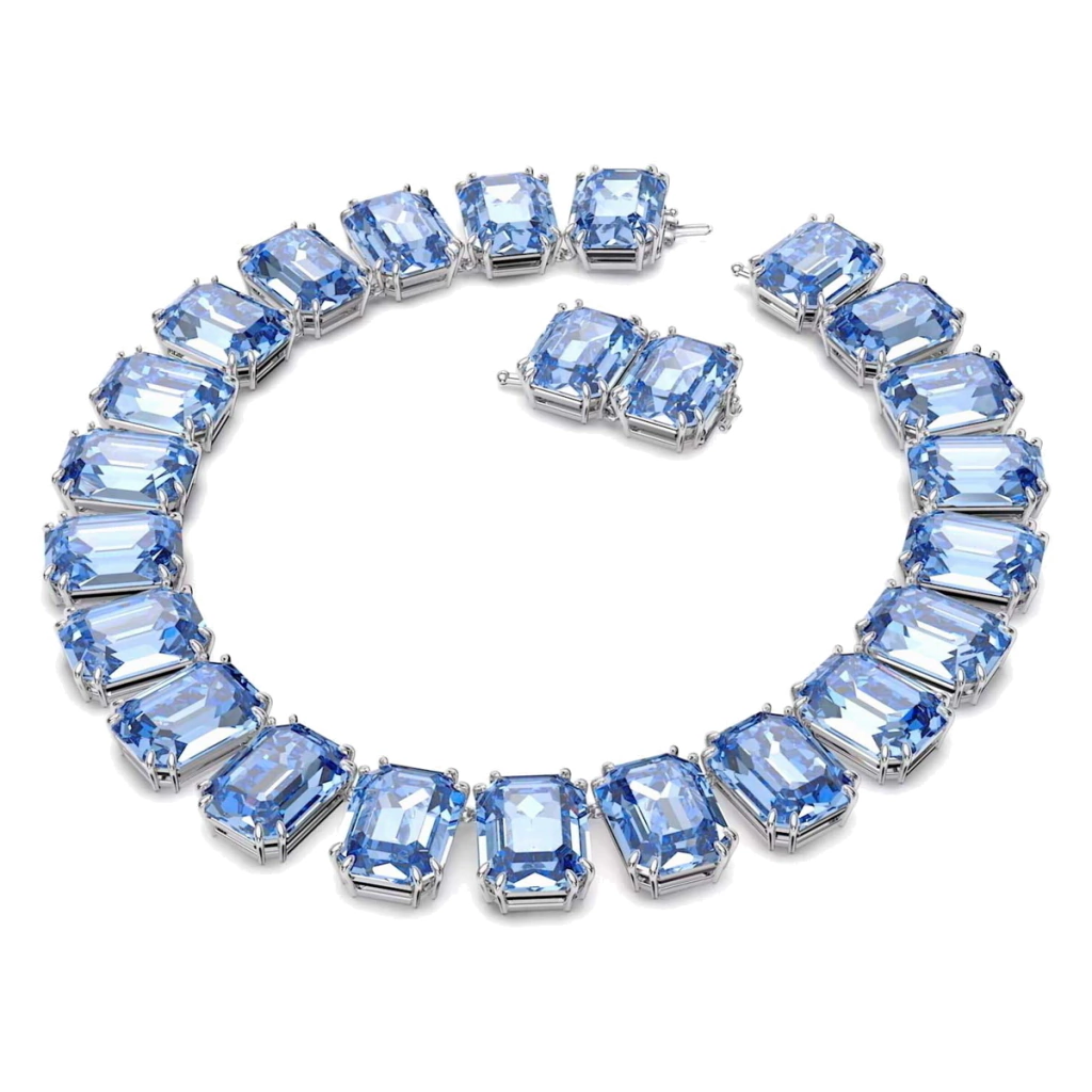 Descubre el nuevo indispensable en tu armario con este elegante collar, diseñado con una fila de cristales azul Violeta de corte octogonal colocados en un engaste de diente de rodio brillante. Su cierre oculto crea una sensación uniforme, perfecta para combinar con unos tejanos y una simple camiseta. Un collar que dará ese toque final a tus nuevos looks. Este collar forma parte de la familia Millenia, diseñada por la Directora Creativa Giovanna Engelbert para la Collection I.