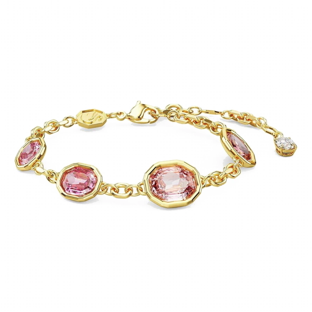 Dale a tu estilo una inyección de color y forma con esta radiante pulsera Imber. Este diseño bañado en tono oro incorpora una delicada cadena acentuada con cristales de color rosa con talla octogonal en un refinado engaste bisel. Se ha colocado una única Swarovski Zirconia en el alargador para añadir luminosa alegría. Regala este accesorio a un ser querido para una ocasión especial o una celebración con significado.