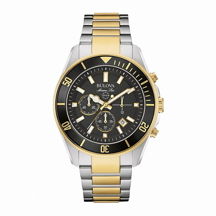 -Esfera y agujas: Negro con indicadores y manecillas luminiscentes y dorados.