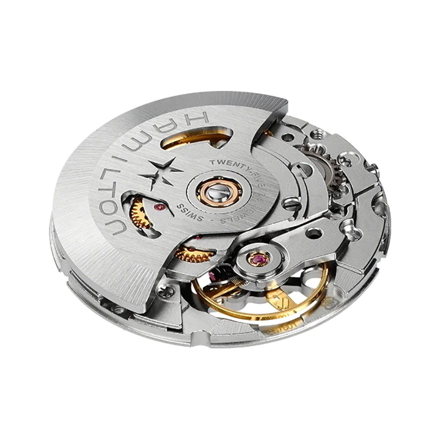 H-10 Un movimiento de tres manecillas con o sin función de fecha y con una reserva de marcha superior de 80 horas, el H-10 aparece con intrincados patrones de caracol y perlas contrastantes para los modelos American Classic que conduce y superficies aerodinámicas para los relojes de los pilotos.