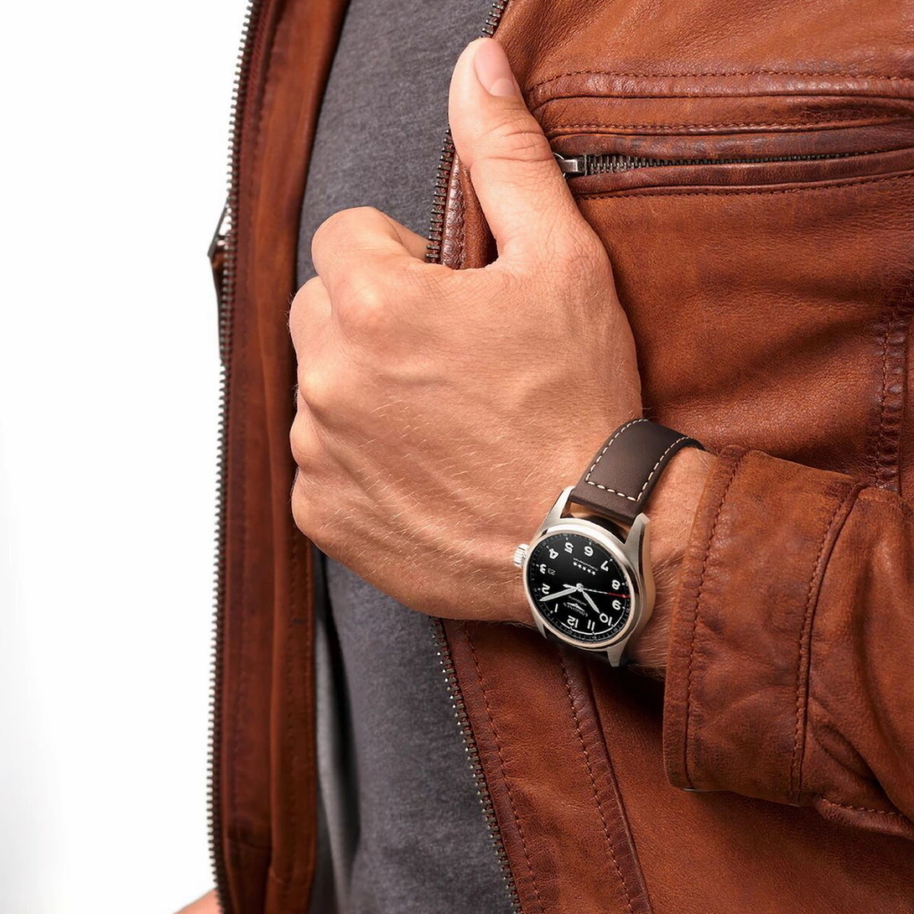 Descripción del movimiento: Movimiento mecánico de cuerda automática con una frecuencia de 25.200 alternancias por hora, con espiral de silicio monocristalino y reserva de marcha de hasta 72 horas.