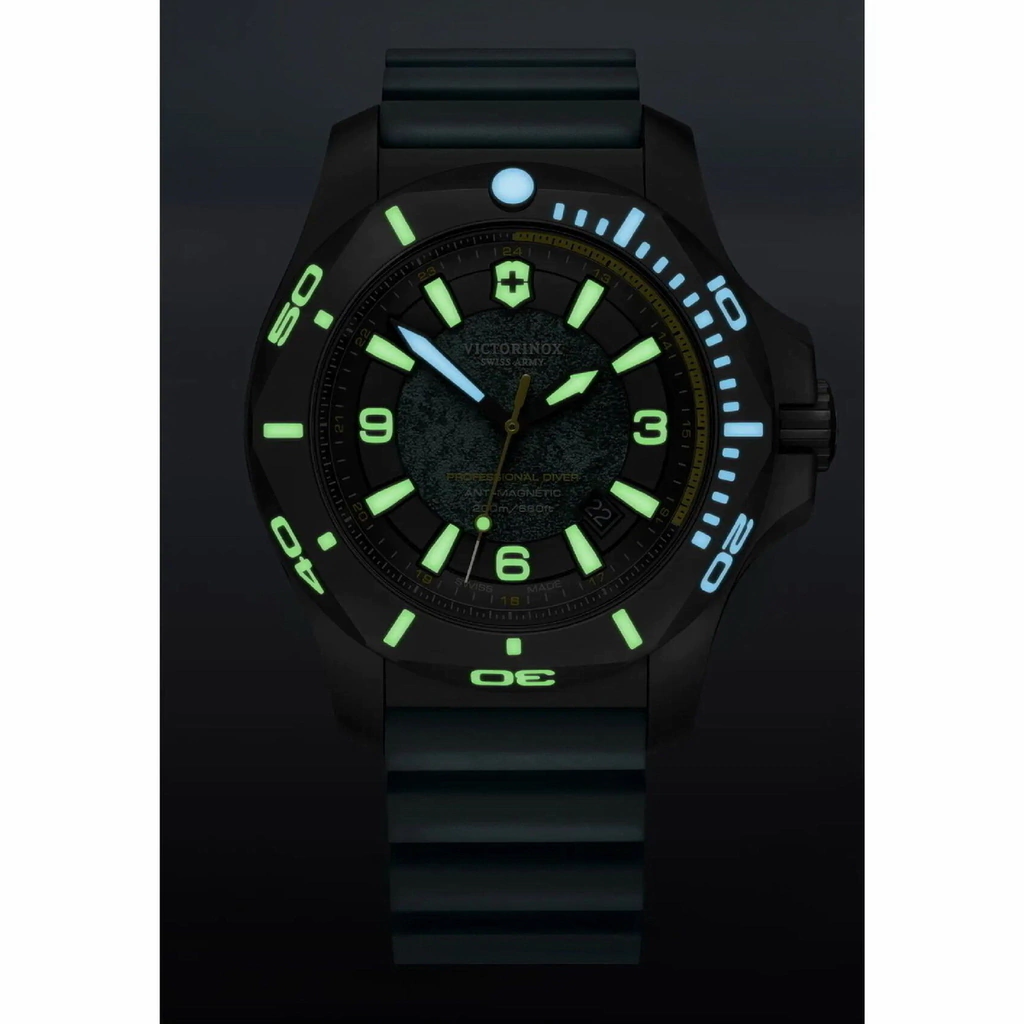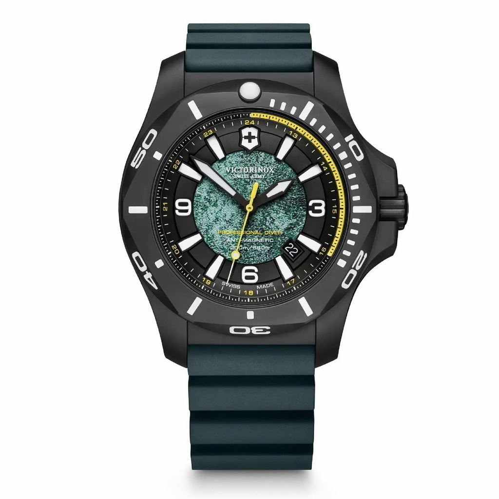 Conoce un reloj con misterio en su corazón. El INOX Professional Diver Limited Edition captura la exploración y la aventura de una inmersión en aguas profundas. La esfera, que refleja el latón oxidado de un naufragio, presenta un impresionante patrón en 3D; los detalles amarillos hacen eco de los colores del equipo de buceo; y las manos agrandadas y los colores Super-LumiNova® aseguran la legibilidad en las profundidades más oscuras. Hemos actualizado la caja de titanio con un acabado de PVD negro mate y está asegurada con una correa de caucho expandible que se ajusta sobre su traje de neopreno. Además, gracias al sistema de liberación rápida de resorte y la correa adicional, puedes cambiarlo fácilmente cuando lo desees. Cada pieza viene con una navaja de bolsillo Spartan PS a juego.