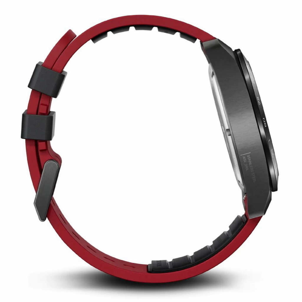 BRAZALETE: Correa de caucho genuino negro y rojo de 21 mm de ancho.
